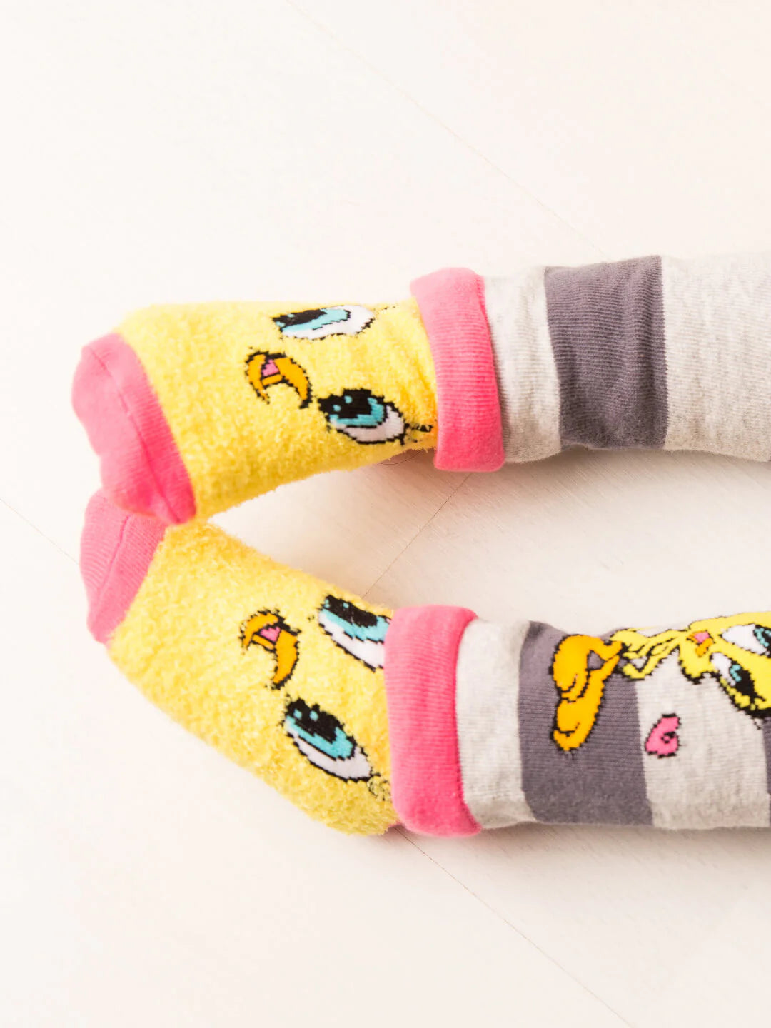Our Tweety Socks bring cheerful fun to every step with cute Tweety Bird faces and bright, happy colours. Made from super-soft, stretchy cotton-rich fabric, they hug little feet with comfy stretch that stays put, perfect for playtime, teaming with trainers or snuggles in slippers.