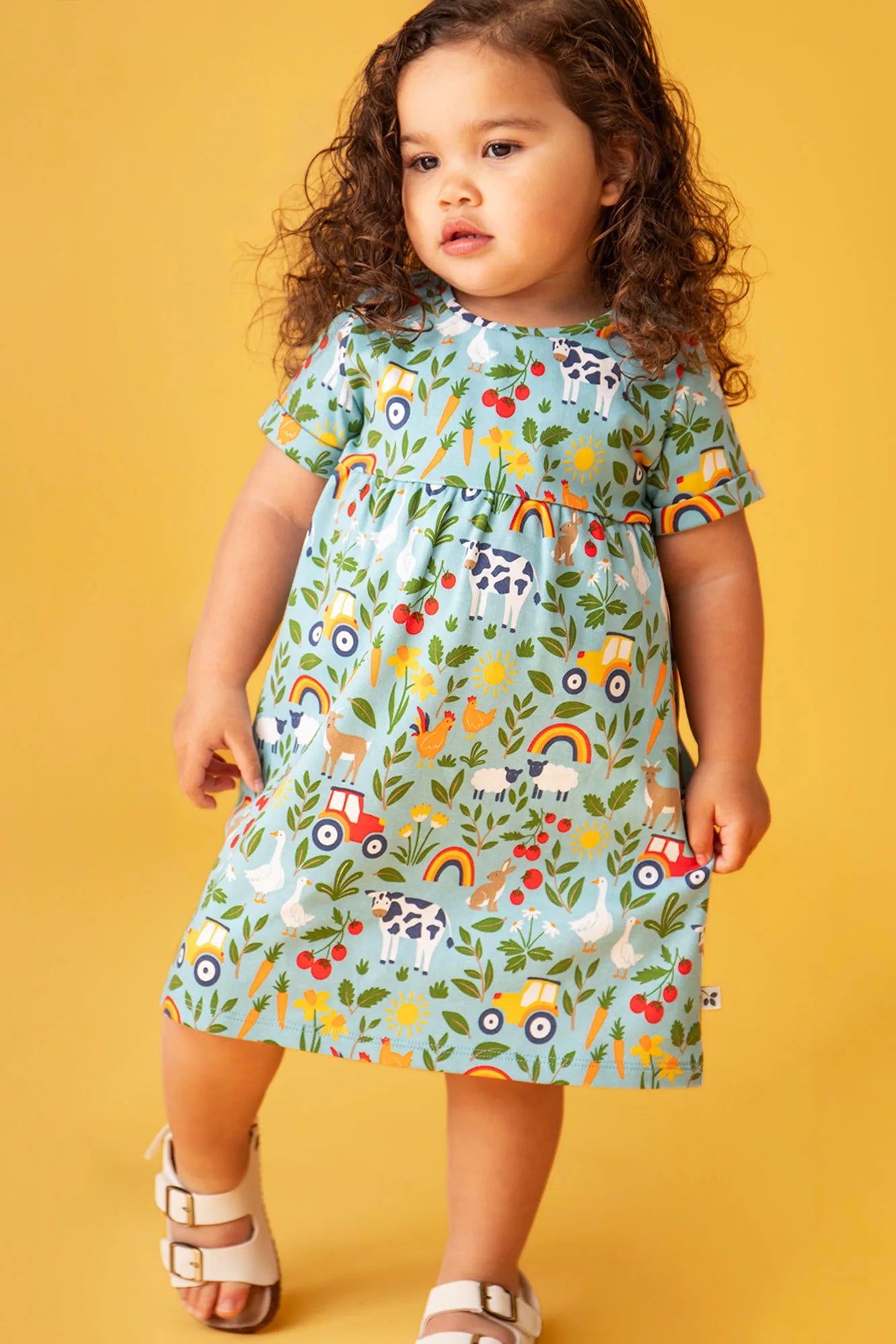 Ensure their warm weather adventures are super-cosy with our relaxed-fit Tallie Dress. This GOTS certified dress is crafted from 100% organic cotton, making it wonderfully soft, cosy, breathable and with no nasty chemicals. The gathered waist makes this baby and toddler dress an easy-to-wear style, and the fixed roll-ups on the short sleeves create a casual look.