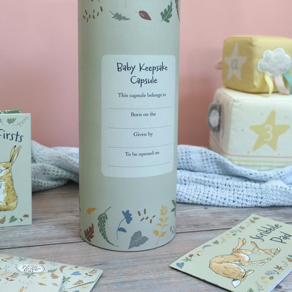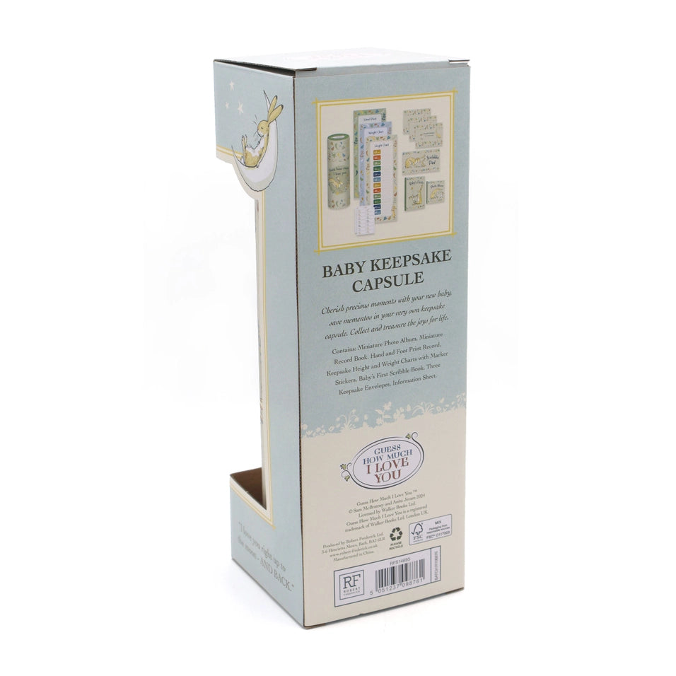 BABY KEEPSAKE CAPSULE: Cherish those precious moments with your new baby and save your mementos and record baby milestones with this beautiful keepsake capsule. PERFECT NEW PARENT GIFT: The capsule contains everything a new parent needs to capture their child’s special moments. INCLUDES CHARTS AND RECORD BOOK: Make sure you record all the important development milestones with the included height and weight charts and mini record book. There is also a mini photo album for those early pictures, plus handprint and footprint pages. KEEP TRINKETS SAFE: The capsule also contains a mini trinket box to keep mementos safe, as well as three keepsake envelopes. Baby’s first scribble pad is also included so you can keep the first cherished artworks. BEAUTIFUL ARTWORK: The capsule and included items are all decorated with iconic Guess How Much I Love You character artwork.