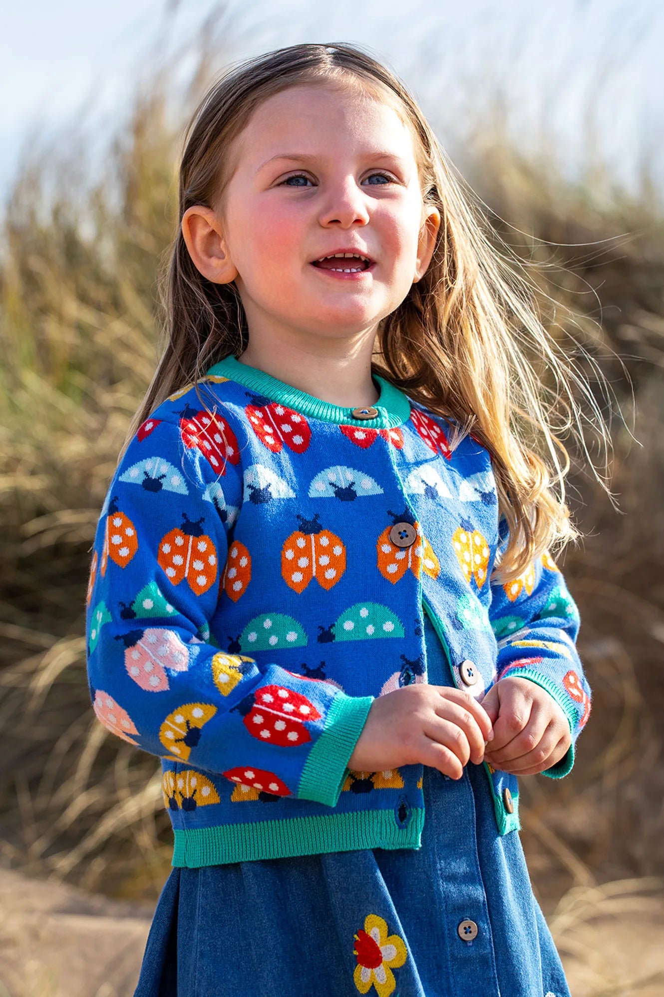 Meet the Mellion Cardigan – a soft, snuggly layer knitted from organic cotton for cosy comfort all day long. Featuring a bright Frugi Fairisle design, ribbed trims, and charming wood-effect buttons, this cheerful cardigan is perfect for chilly weather.