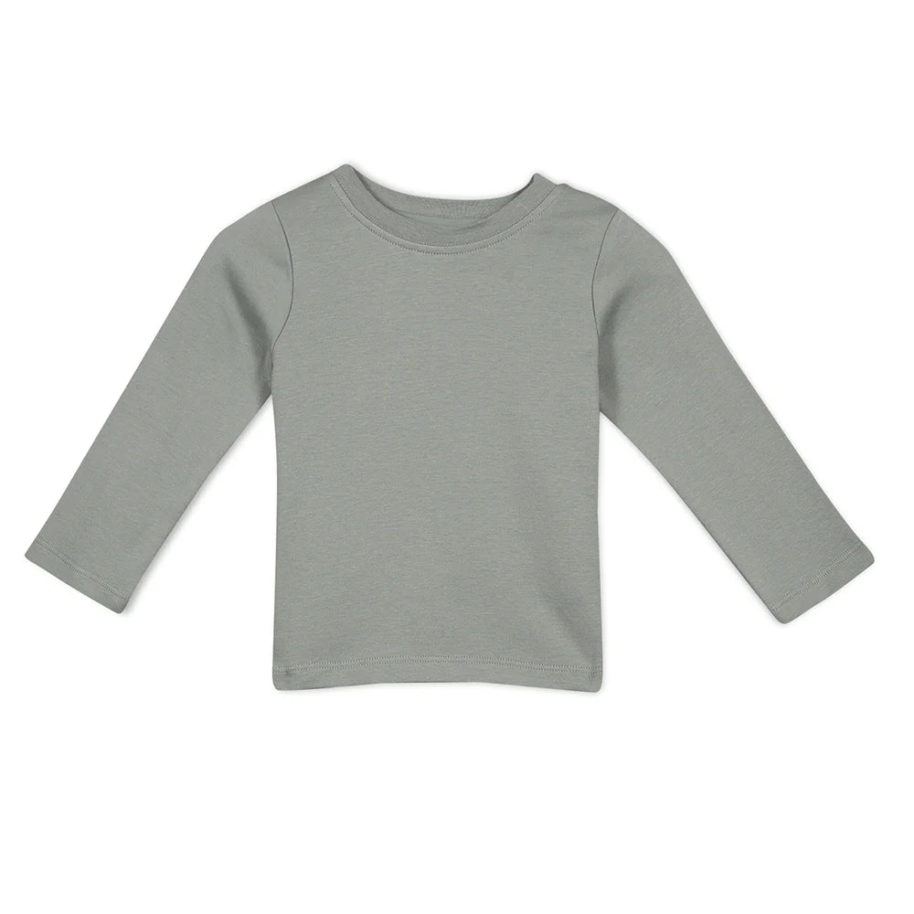 Top – Gentle cotton interlock long-sleeve tee in a soft iceberg green shade, offering everyday comfort with a snug fit.
