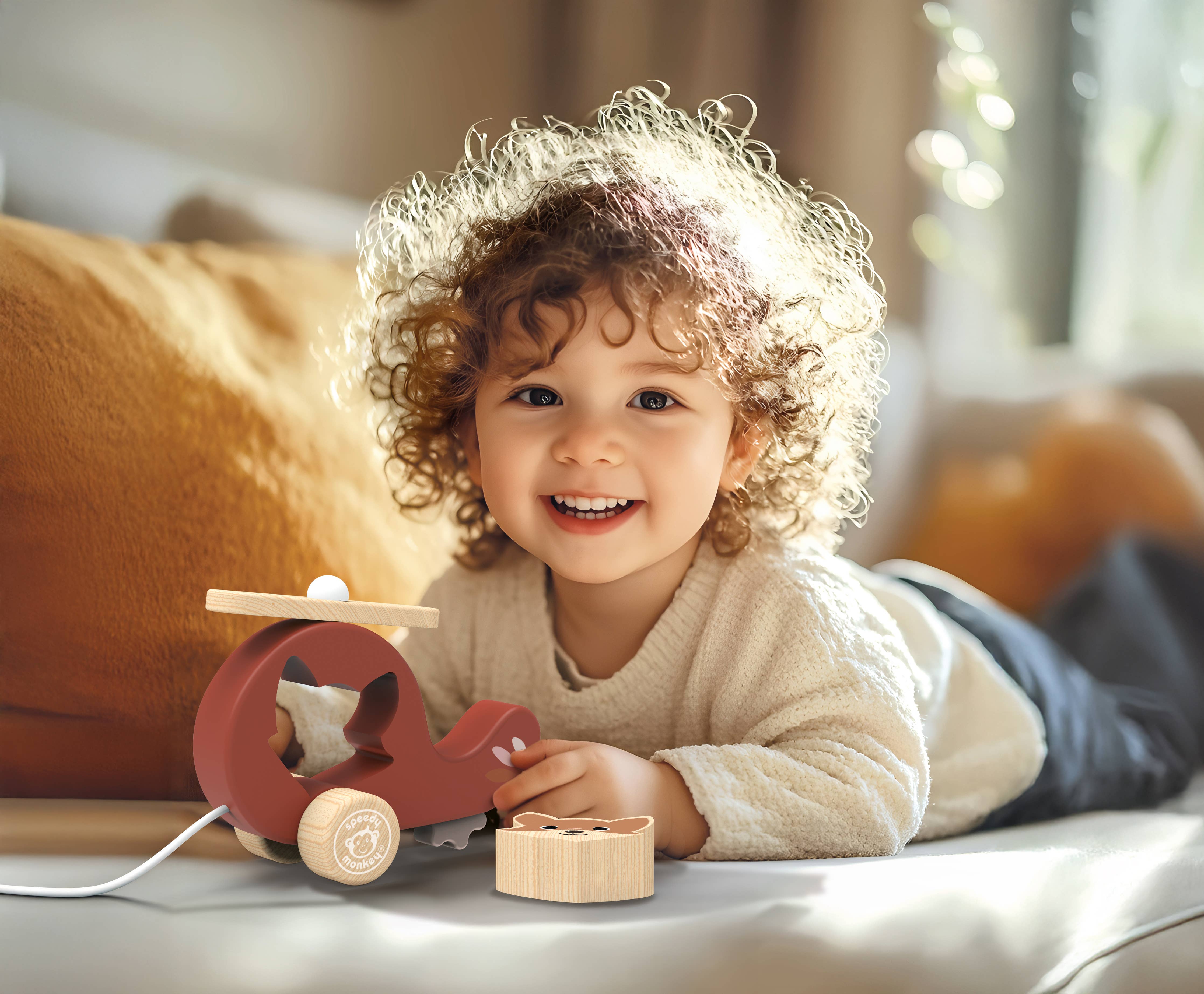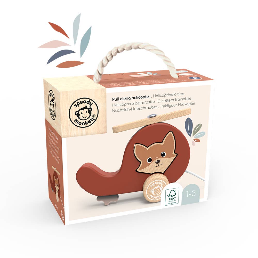 imagination and support early walking adventures!, this playful helicopter encourages coordination and motor skill development with every step. Perfect for toddlers 12 months and up, this toy is sized just right for little hands and feet. The bright multicolor finish and spinning wheels add excitement, while the friendly design makes it a favorite companion for indoor play. Crafted from FSC-certified wood and painted with non-toxic, child-safe finishes, the Pull Along Helicopter is safe, eco-conscious, and built to last. Wipe clean easily with a damp cloth for simple care.