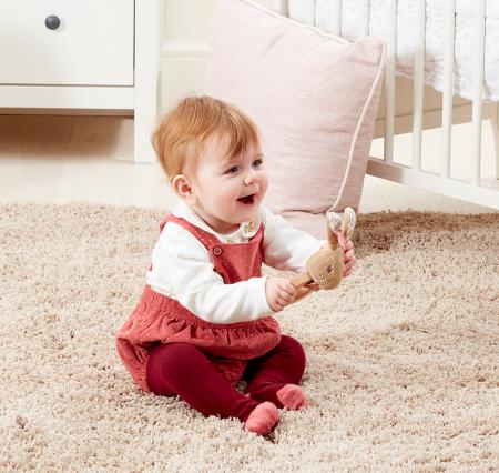 The beautiful Signature Flopsy Bunny Ring Rattle is from the Peter Rabbit Signature Collection, a range of ‘Forever' heirloom toys created to be shared across generations. Flopsy Bunny is one of the much-loved characters from the traditional children's storybook, Tales of Beatrix Potter and evokes nostalgia in gift buyers who want to share happy memories and traditional values of their own childhood. The adorable Signature Flopsy Bunny Ring Rattle features different textures, bright colours and a soft chime rattle to provide sensory stimulation and encourage baby to explore their senses through play. The wooden ring also offers relief for teething little ones. The fun but practical Ring Rattle has been created from a combination of sustainably sourced Wood and the highest quality, softest plush with beautiful 100% cotton, patterned fabrics to offer both contemporary yet traditional styling that will appeal to all generations of gift buyer.